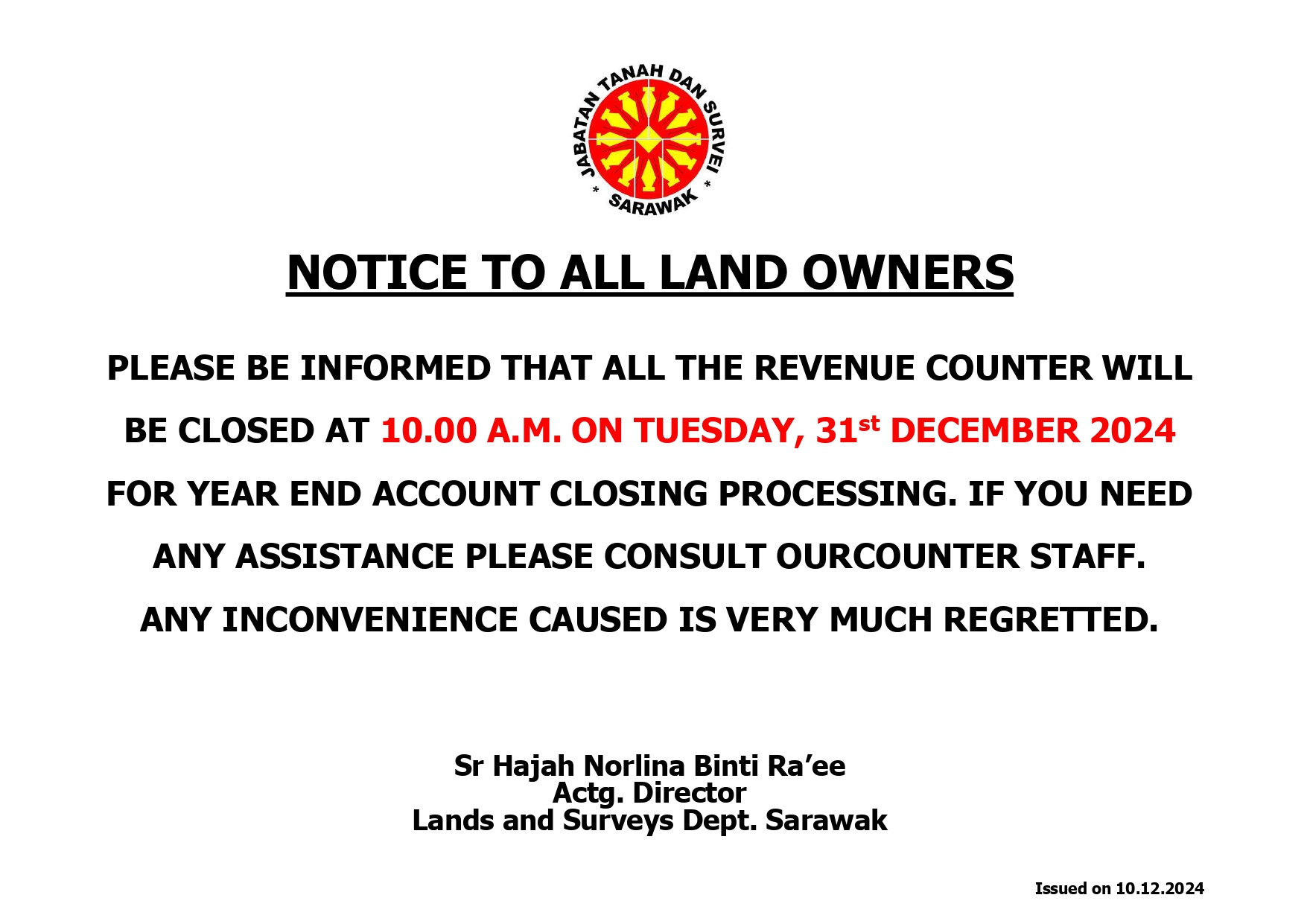 NOTICE TO ALL LANDOWNERS